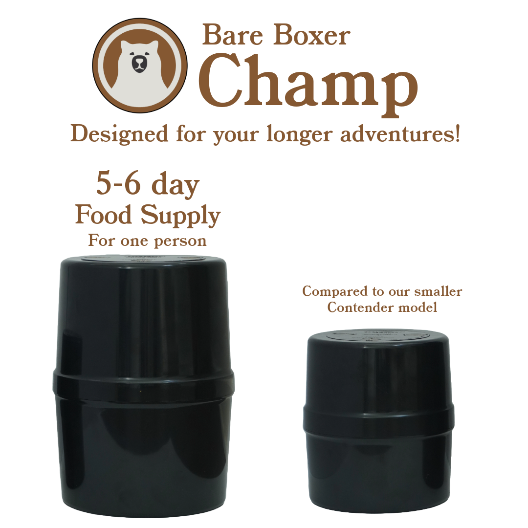 Designed with extra capacity for those longer journeys, the Bare Boxer Champ keeps your food secure from even the most determined bears while still fitting comfortably in your pack.